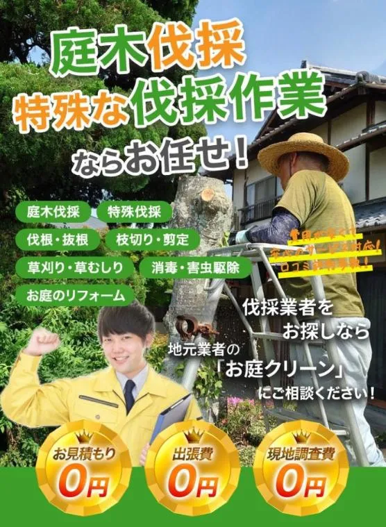 | 業務内容 | ・砂利敷き、防草シート、コンクリート舗装等の施工 ・庭石、庭木、ブロック塀、物置等の撤去・処分 ・ウッドデッキ、フェンス、カーポート等の設置・解体 ・外構、エクステリア工事全般 ・残置物撤去、遺品整理 |