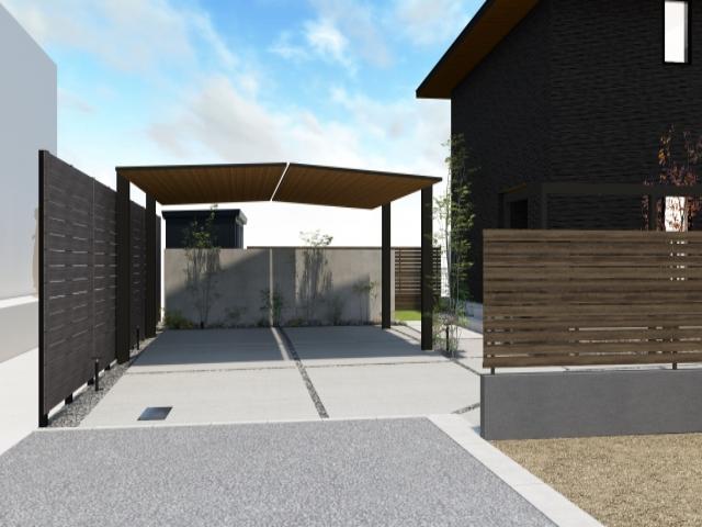 車の出し入れがしやすく、開放的な空間を演出する後方支持タイプを施工。住宅の外観ともマッチし、スタイリッシュな駐車スペースが実現しました。