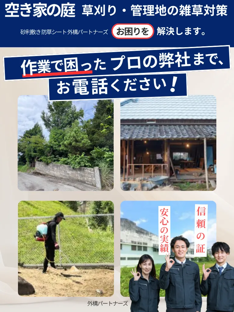 空き家、庭、駐車場、管理地の雑草でお困りではありませんか?